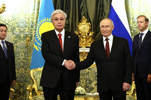 俄罗斯与哈萨克斯坦总统弗拉基米尔·普京和卡瑟姆若马尔特·托卡耶夫签署了关于两国关系提升至全面战略伙伴与同盟级别的宣言。签署仪式在克里姆林宫举行,紧随两国领导人会谈之后。