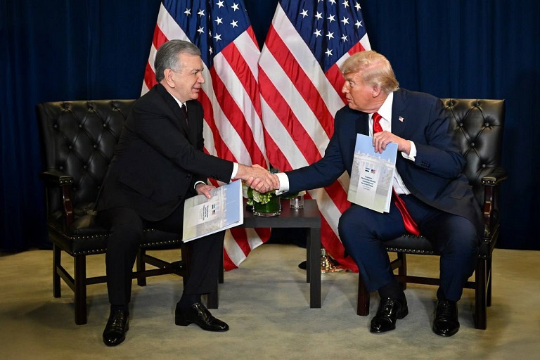 Shavkat Mirziyoyev y Donald Trump Foto del servicio de prensa del presidente de Uzbekistán