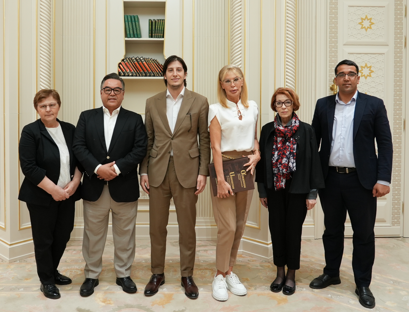 访问结束时,代表团在《贵宾留言簿》上留下了感想,并获赠一套关于乌兹别克斯坦文化遗产的珍贵书籍,这些书籍收藏于世界各地的博物馆中。